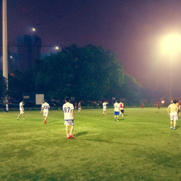 ? ? 當(dāng)我跟著天創(chuàng)公司足球隊(duì)一起走進(jìn)新華路的球場(chǎng)時(shí),驀地想起上一次認(rèn)認(rèn)真真踢一場(chǎng)球還是在小學(xué)時(shí)代。那時(shí)候每天做值日的地方是一塊小草坪,兩端各是貼著草坪邊界種下的一排香樟,稍微居中的兩棵樹的間隙正好被我們拿來當(dāng)做球門,男孩子們每天中午都會(huì)在這兒踢到響鈴然后狂奔到教室。當(dāng)時(shí)班里大部分男孩子都是巴薩球迷,羅納爾迪尼奧是這群孩子一致的偶像,我也不例外,總會(huì)在放學(xué)后一遍又一遍跟著小伙伴們?cè)诓萜荷夏7滦×_的牛尾巴過人和踩單車,仿佛永遠(yuǎn)不會(huì)覺得累。2006年巴薩有一場(chǎng)對(duì)陣比利亞雷亞爾的比賽,羅納爾迪尼奧在比賽的最后時(shí)刻完成了一記精彩的倒鉤射門,這粒進(jìn)球讓我真切地見識(shí)到了這項(xiàng)運(yùn)動(dòng)獨(dú)特的魅力,我也開始能理解,為什么我的叔叔們?cè)诳辞虻臅r(shí)候會(huì)有那樣忘情的吶喊。