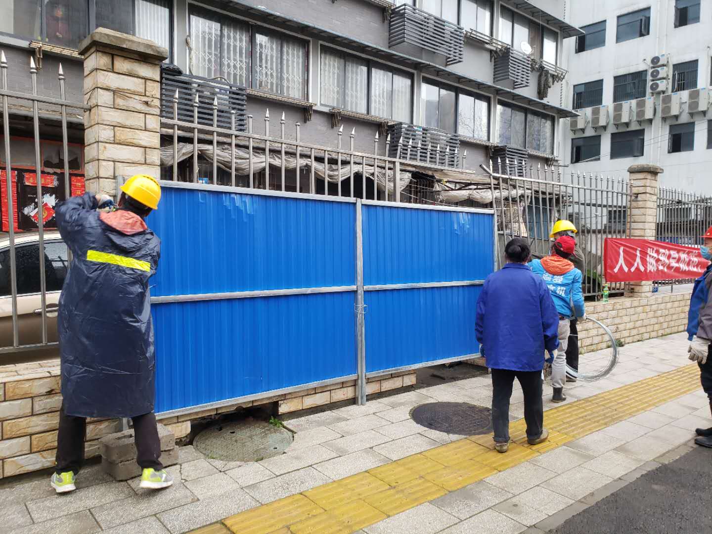 14日上午7點,漢陽市政八個分子公司550余名施工人員在漢陽全區全面鋪開工作。并利用水馬、鐵馬、鐵皮圍擋等對七里一村、磨山南苑小區等進行臨時封閉施工。預計14日晚12點之前可完成漢陽169處點位的臨時圍擋施工。