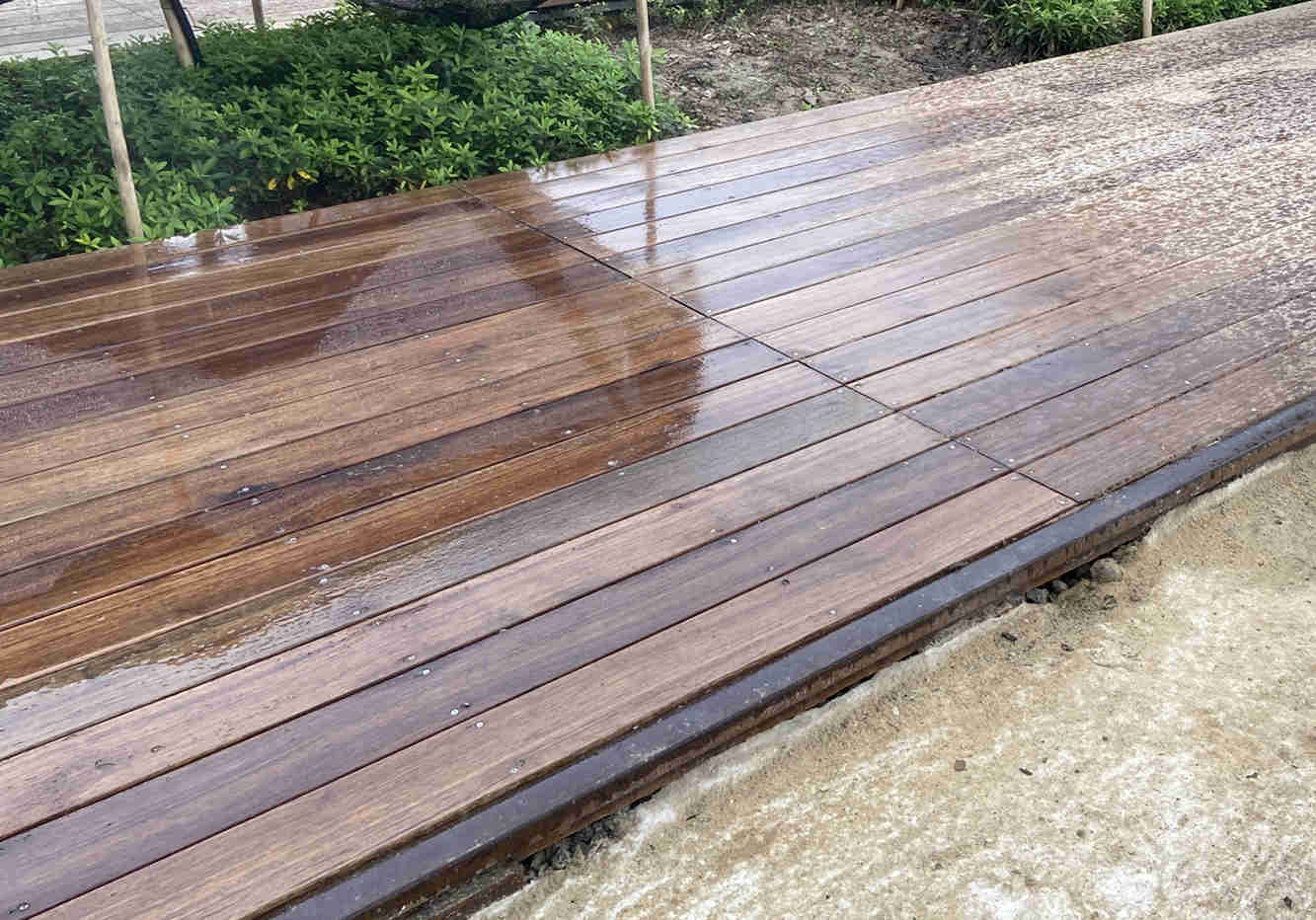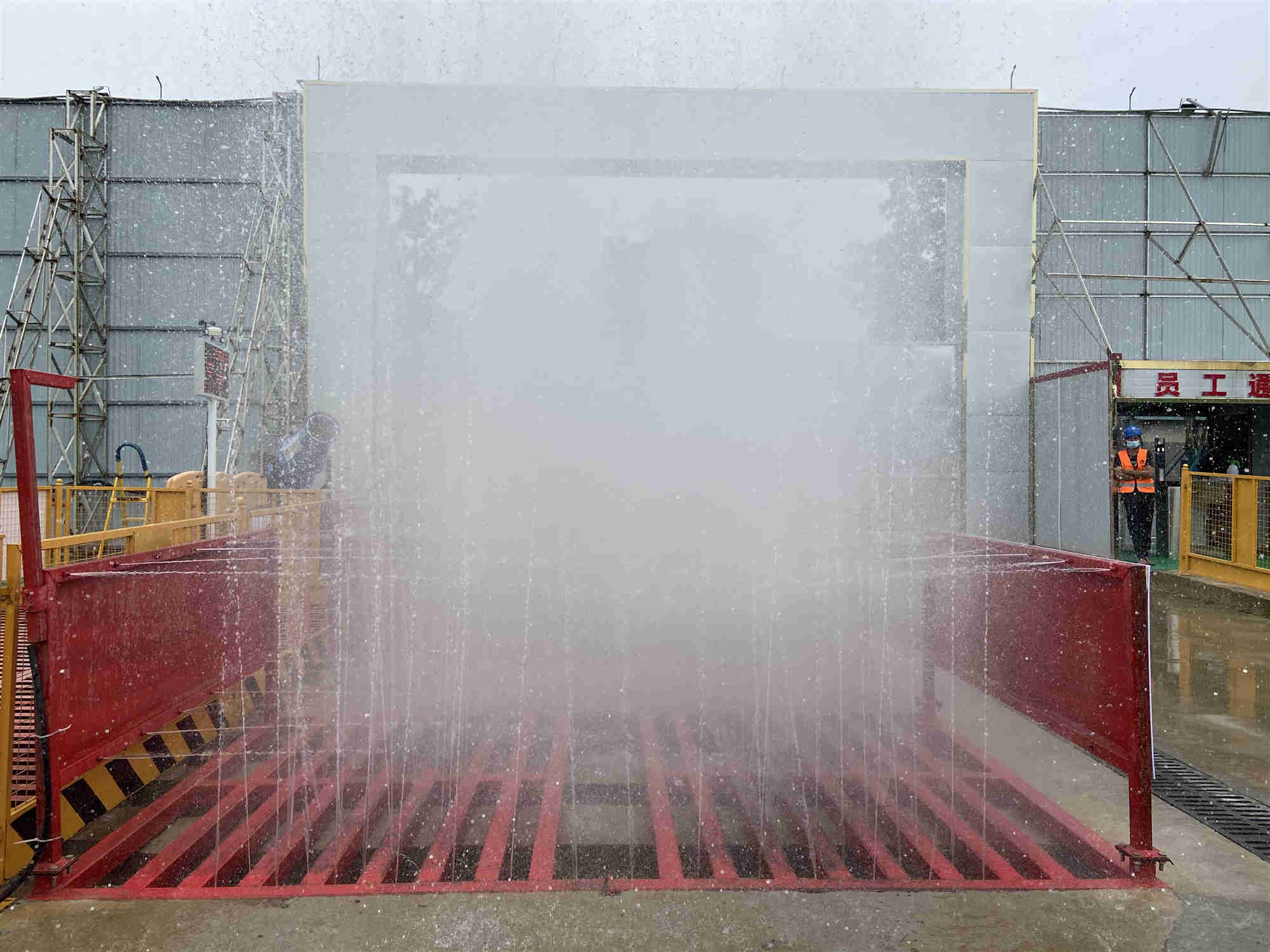 項目現場配備有高壓式標準化洗車槽、噴淋系統及除塵霧炮,能夠有效對揚塵進行“壓制”。同時對原狀電力井采用菠蘿格腐木蓋板進行了隱形化處理,與周邊的環境融為一體,更為美觀且防腐耐用。