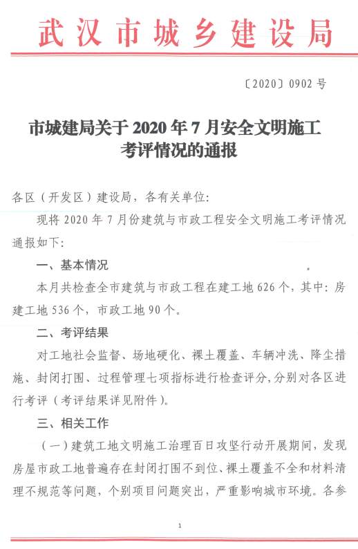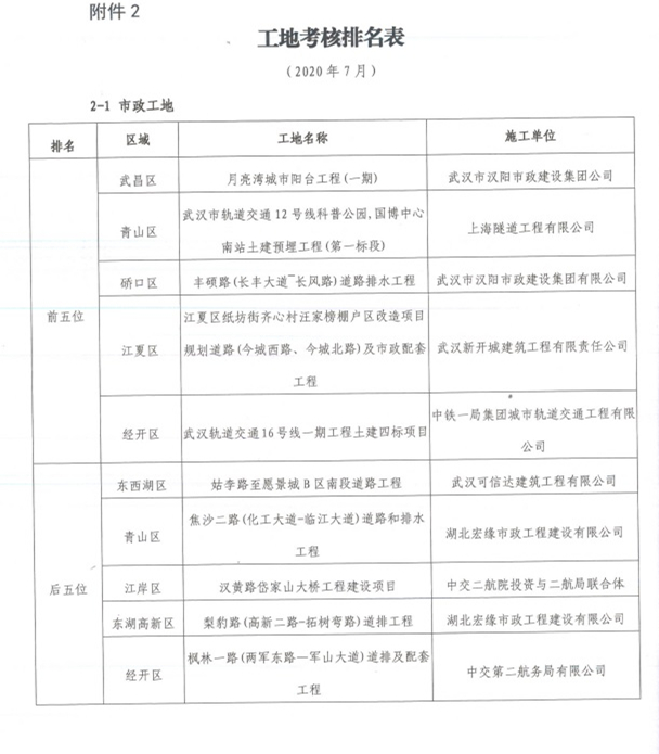 在武漢市城鄉建設局組織的7月份建筑與市政工程安全文明施工考評活動中,漢陽市政月亮灣城市陽臺項目以標準化的安全配套設施及系統化的管理模式,在全市90個市政工地中脫穎而出,榮獲全市市政工程安全文明施工排名第一的優異成績!同時,在武漢城投集團組織的7月份精細化檢查活動中,月亮灣城市陽臺項目以最高分的成績摘得桂冠,成為全市市政工程的施工典范!