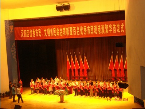 9月13日上午9時(shí),由漢陽區(qū)委區(qū)政府組織的優(yōu)秀市民、文明市民表彰會(huì)在漢陽財(cái)校舉行,經(jīng)過歷時(shí)三個(gè)多月的全民評(píng)選,漢陽市政集團(tuán)公司一公司彭駿同志、二公司周紅同志被評(píng)為漢陽區(qū)優(yōu)秀市民稱號(hào),并有幸參加港澳學(xué)習(xí)交流活動(dòng)。(一公司 賈慧然)
