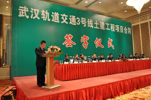 簽字儀式上,集團公司胡紅勝總經理代表中標企業發言,在講話中表達了建設武漢地鐵項目的信心與決心。