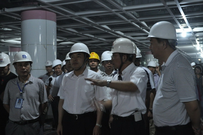 洪山廣場站位于武昌區政治文化中心,是地鐵2、4號線最大的換乘站,鐘鑫公司洪山廣場項目部2008年12月正式進場打圍,于年頭完成軌道鋪設工作,現正在進行出入口建設施工。場站內各安裝、裝修工程已全面啟動,預計9月完成。唐良智市長在聽取了現場人員對洪山廣場站建設進度及場站建設規劃的情況匯報后,指出作為武漢首條地鐵,2號線務必按期、高質量完成,以人為本,以乘客為先。
