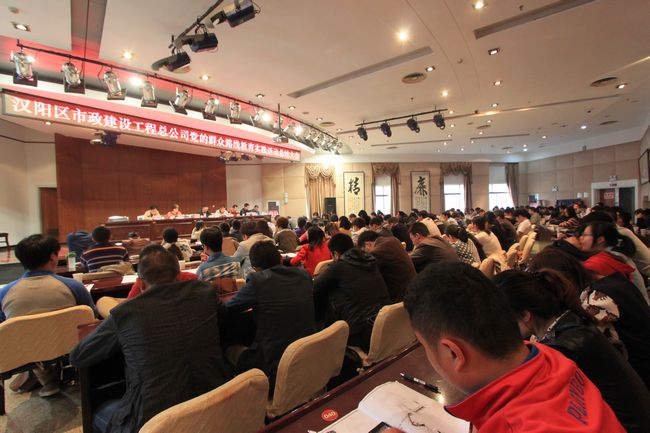 2014年10月28日下午15:00,漢陽區市政建設工程總公司黨的群眾路線教育實踐活動總結大會在宏陽大廈四樓會議室召開。全公司上下共計210余名黨員同志參加了此次會議,以漢陽區政協副主席李作義同志為組長的區委第八督導組有關領導蒞臨本次會議進行指導。