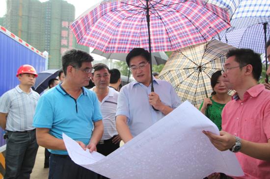 8月8日下午,武漢市副市長張光清一行十余人,冒雨來到常青北路污水泵站視察工程進展情況,武漢市建委、地產、城投及東西湖區水務局副局長朱傳彪等相關負責人陪同視察。