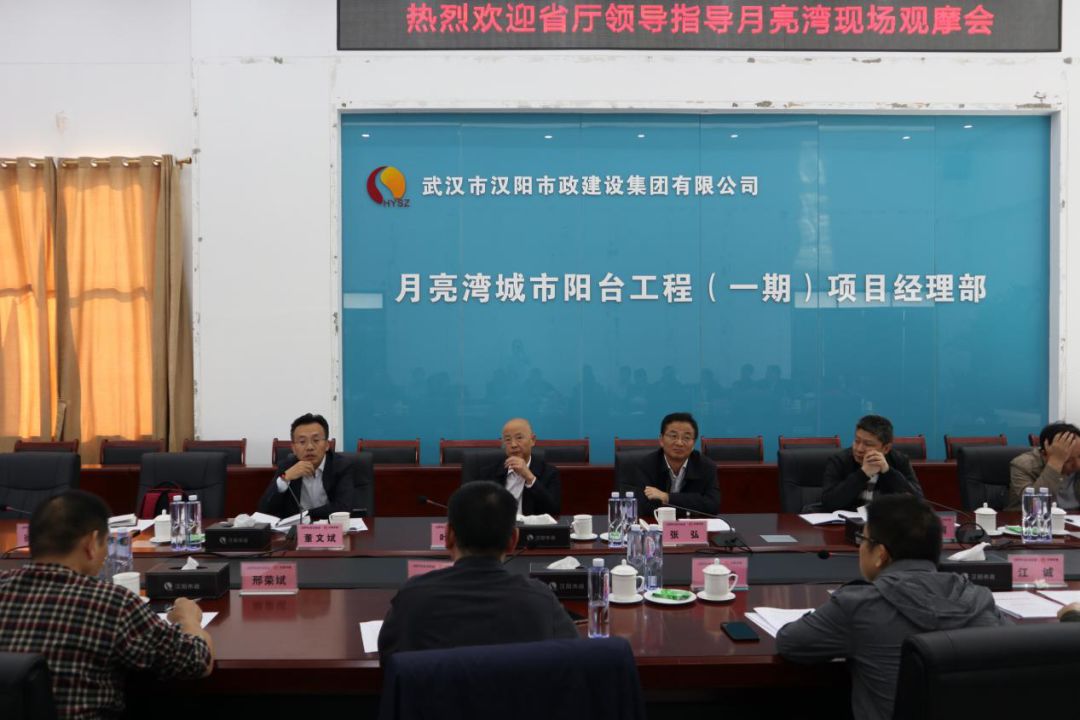 張弘一行在項目部會議室聽取了本次觀摩會籌備工作的進展匯報,漢陽市政集團公司總經理虞志鵬介紹到,根據省廳觀摩工作方案,公司根據現場實際和會議觀摩形式,將籌備任務詳細分解為觀摩材料準備、觀摩現場準備、硬件配套準備和軟件配套準備四部分,并成立漢陽市政觀摩會籌備專班、月亮灣觀摩會籌備各參建方專班,每周三、周六定期召開推進會,統籌會議籌備進展,目前各項工作正有條不紊進行。