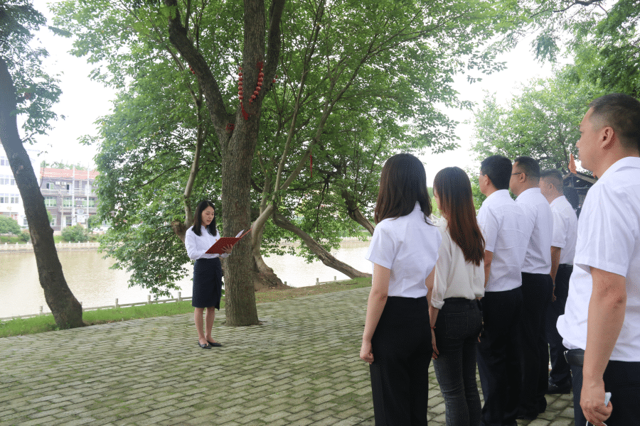 ? ? ? 漢陽市政五公司黨支部書記王慶敏同志帶領大家重溫入黨誓詞,在莊嚴的烈士紀念碑前,大家舉起右手,在擲地有聲的宣誓詞中堅定理想信念。