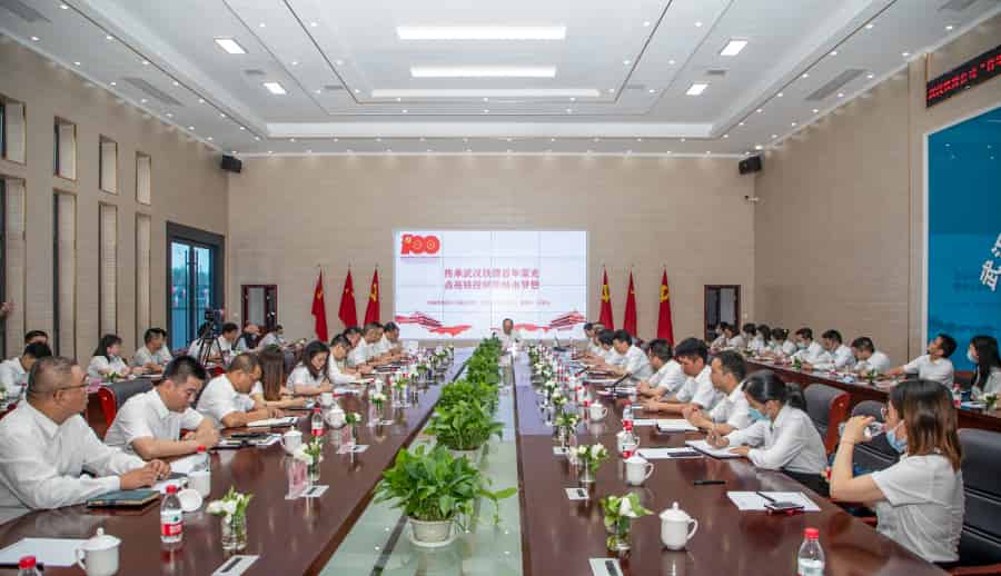 ? ? ? 在隨后舉行的“百年黨史·紅色傳承”主題黨課上,武漢市城投集團公司副總經理、鐵投公司黨委書記、董事長汪國圣以“傳承武漢鐵路百年榮光,點亮鐵投賦能城市夢想”為主題,為大家講述了中國鐵路與武漢鐵路的發展史,講述了百年來武漢的“鐵軍精神”,汪國圣表示,武漢的每一次騰飛都與鐵路有關,鐵軍精神永垂不朽,武漢鐵軍將“以臻心,鑄未來。”
