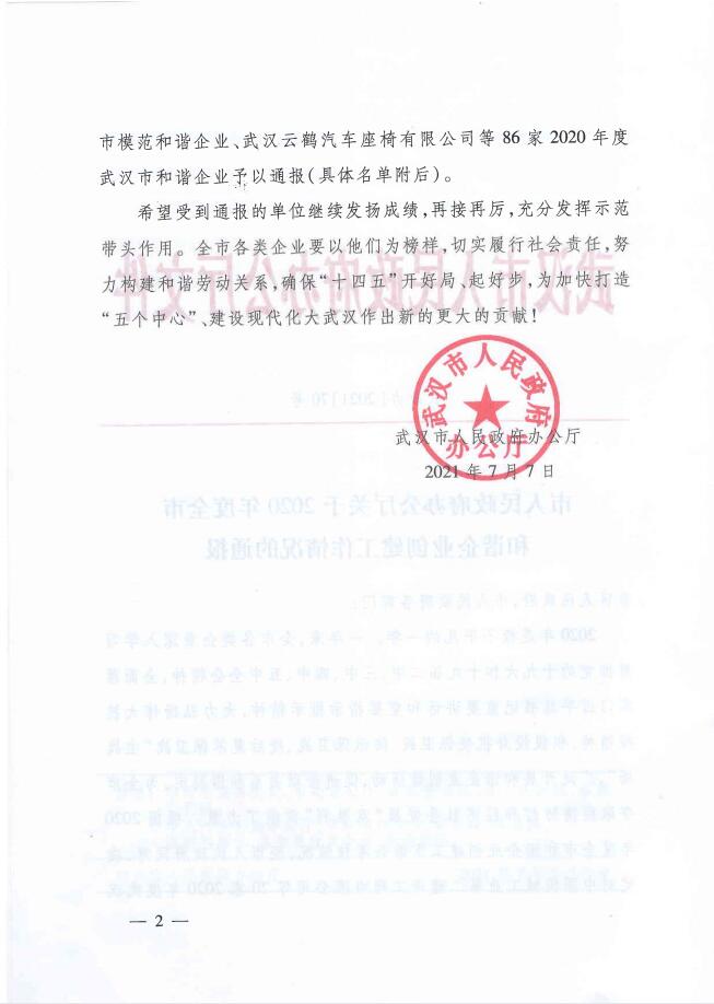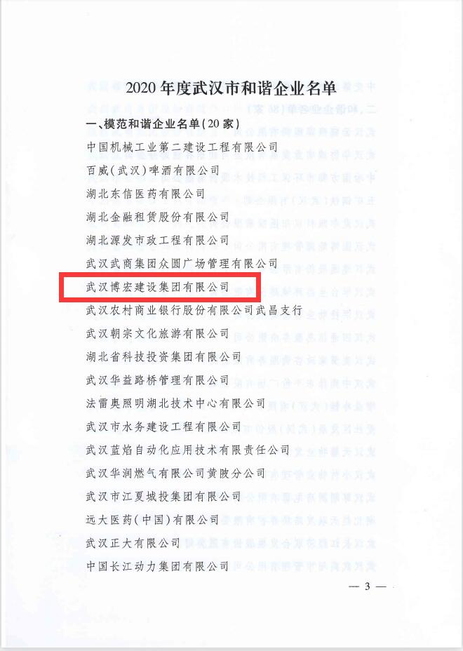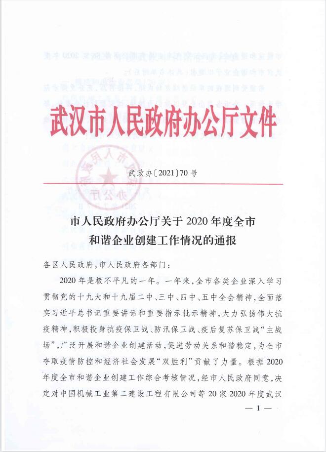 近日,根據2020年度武漢市和諧企業創建工作綜合考核情況,漢陽市政博宏公司獲評“2020年度武漢市模范和諧企業”榮譽稱號,琴臺公司獲評“2020年度武漢市和諧企業”榮譽稱號。此前,鐘鑫公司獲“2014年度武漢市和諧企業”,集團公司獲“2016年度武漢市模范和諧企業”,致遠公司獲“2017年度武漢市模范和諧企業”,天創公司獲“2019年度武漢市模范和諧企業”,五公司獲“2019年度武漢市和諧企業”。截至目前,漢陽市政已有7家單位獲評“武漢市模范和諧企業”和“武漢市和諧企業”。