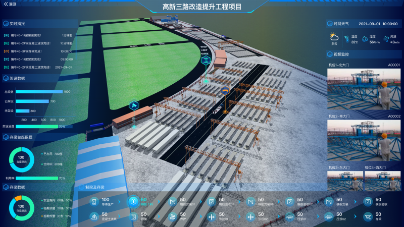 項目以“人工智能應用”為主,以“大數據智能化”為引領,構建“智慧交通、智慧橋梁、智慧水務、智慧管網、智慧路燈”五大智慧工程。項目以BIM+GIS技術打造的高精度數字模型為依托,采用預制裝配式連續結構及智能機械化設備,讓智慧建造推動項目建設智能、高效。項目創新應用“項目協同管理平臺”、“智慧梁場系統”,延伸“項目信息化辦公平臺”,打造工地智慧運維大腦。