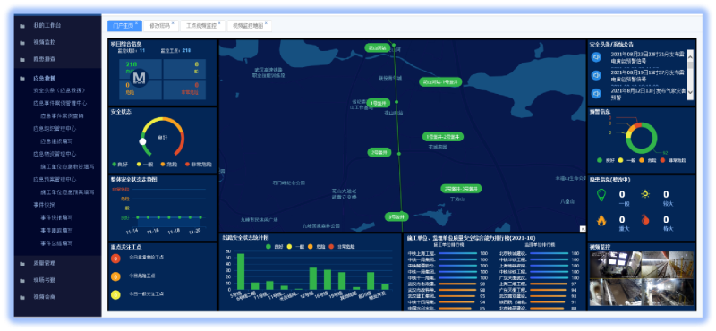 通過物聯網平臺將現場硬件數據實時同步到平臺中,展示現場環境PM2.5、噪聲、風速、溫度、濕度等狀態,生成各項環境指標趨勢圖,自定義預警值,遠程控制設備。項目內部設有勞務班組人員實名制系統,進退場人員實時更新,并對接武漢市實名制管理平臺,接受勞務人員進場及上下班打卡監管。利用手機端安全管理系統,由責任人對問題進行整改回復,記錄人對問題進行復核,使問題形成閉環,自動生成整改通知單、罰款單、安全日志,提高一線工作人員工作效率。基于施工現場虛擬危險源特點讓體驗者可以走進真實的虛擬現實場景中,通過沉浸式和互動式體驗讓體驗者得到更深刻的安全意識教育,提升全員生產安全意識水平,具有科技應用水平高、培訓成效好、安裝部署快,使用成本低等顯著特點。與建設單位、監理單位協同使用武漢地鐵質量安全管理平臺,實現施工現場視頻監控、隱患排查、應急管理、質量管理及視頻會商一體化協同管理。