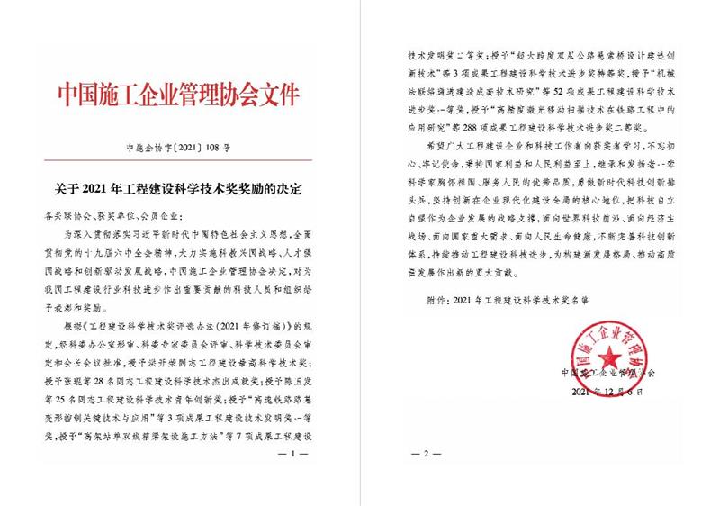 本次獲得國家級科學技術獎項的認定,是對公司長期堅持重視科技研發(fā)工作、致力于從實際生產(chǎn)需求出發(fā)、解決項目施工各項技術難題的高度肯定!公司也將依托勞模創(chuàng)新工作室的專業(yè)研發(fā)平臺和技術創(chuàng)新人才,繼續(xù)堅持把科技自立自強作為企業(yè)發(fā)展的戰(zhàn)略支撐,不斷完善科技創(chuàng)新體系,持續(xù)推動工程建設科技進步,為構建行業(yè)新發(fā)展格局、推動行業(yè)高質量發(fā)展作出新貢獻。