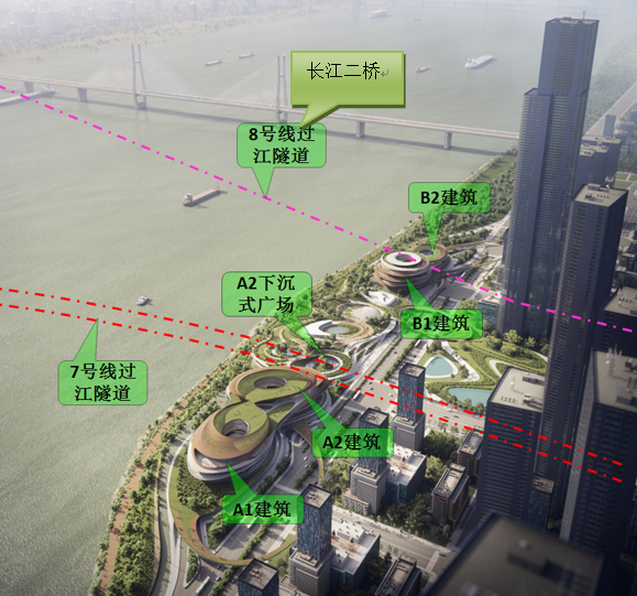 筏板、承臺、樁與區(qū)間隧道空間位置關系圖(地鐵7號線、8號線)