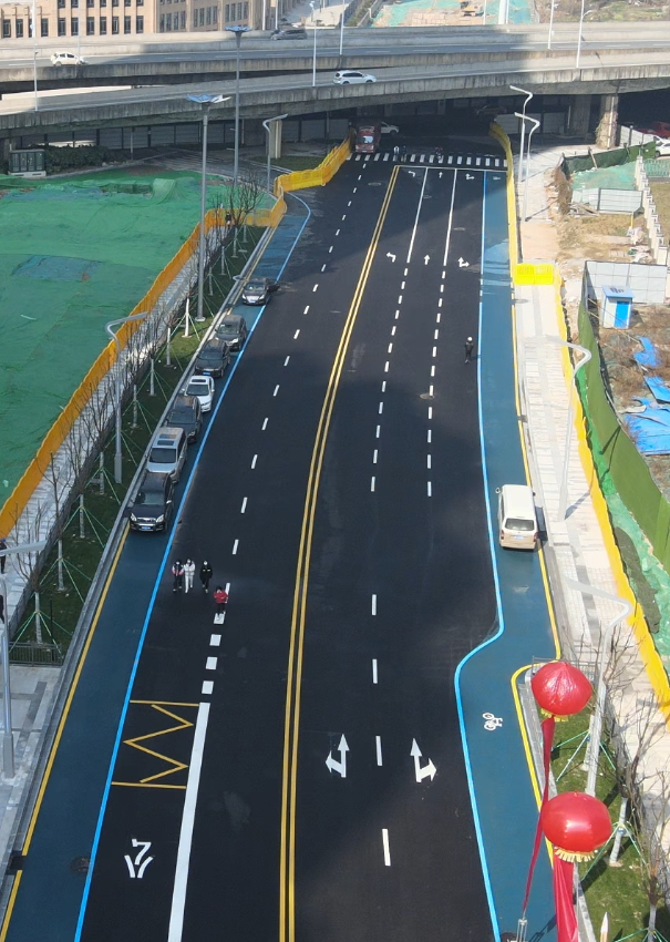 武漢市漢陽區知音大道仙女山段工程西起仙女山路,向東與知音側路平面相交,止于陽城西路,于2020年9月開工建設。此段知音大道,是濱水景觀廊道與骨架交通要道完美結合的樣板項目,處處彰顯“精致”,機動車道扇面造型站石上刻如意紋,別出心裁的設計寓意著“平安如意”;人行道鋪裝黑白搭配,橫向拼錯,形成一串串“跳動的音符”;將傳統道路上的臥石更改為平石,建成后道路線條更加直順清晰,空間視線一覽無余;無處不在的知音LOGO,水波紋樣式的護欄標識,與悠悠漢水遙相呼應,精雕細琢,匠心獨運,為后續漢江南岸的建設起了良好的示范作用。