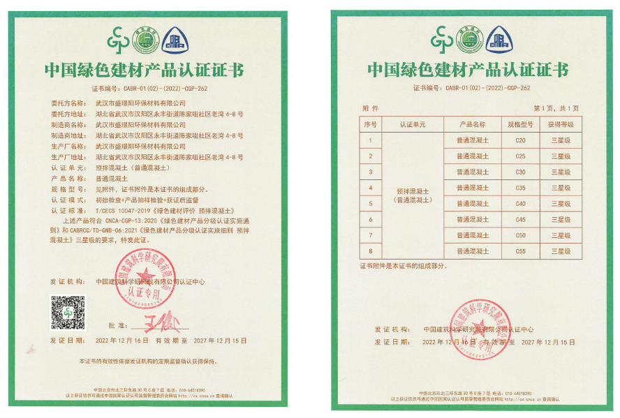 ? ? 近日,喜報(bào)傳來,漢陽市政盛璟陽公司順利通過評審程序,相繼取得了“三星預(yù)拌混凝土綠色生產(chǎn)評價(jià)證書”及“綠色建材三星認(rèn)證證書”,成為一家榮獲“綠色生產(chǎn)+綠色建材”雙三星認(rèn)證企業(yè)。