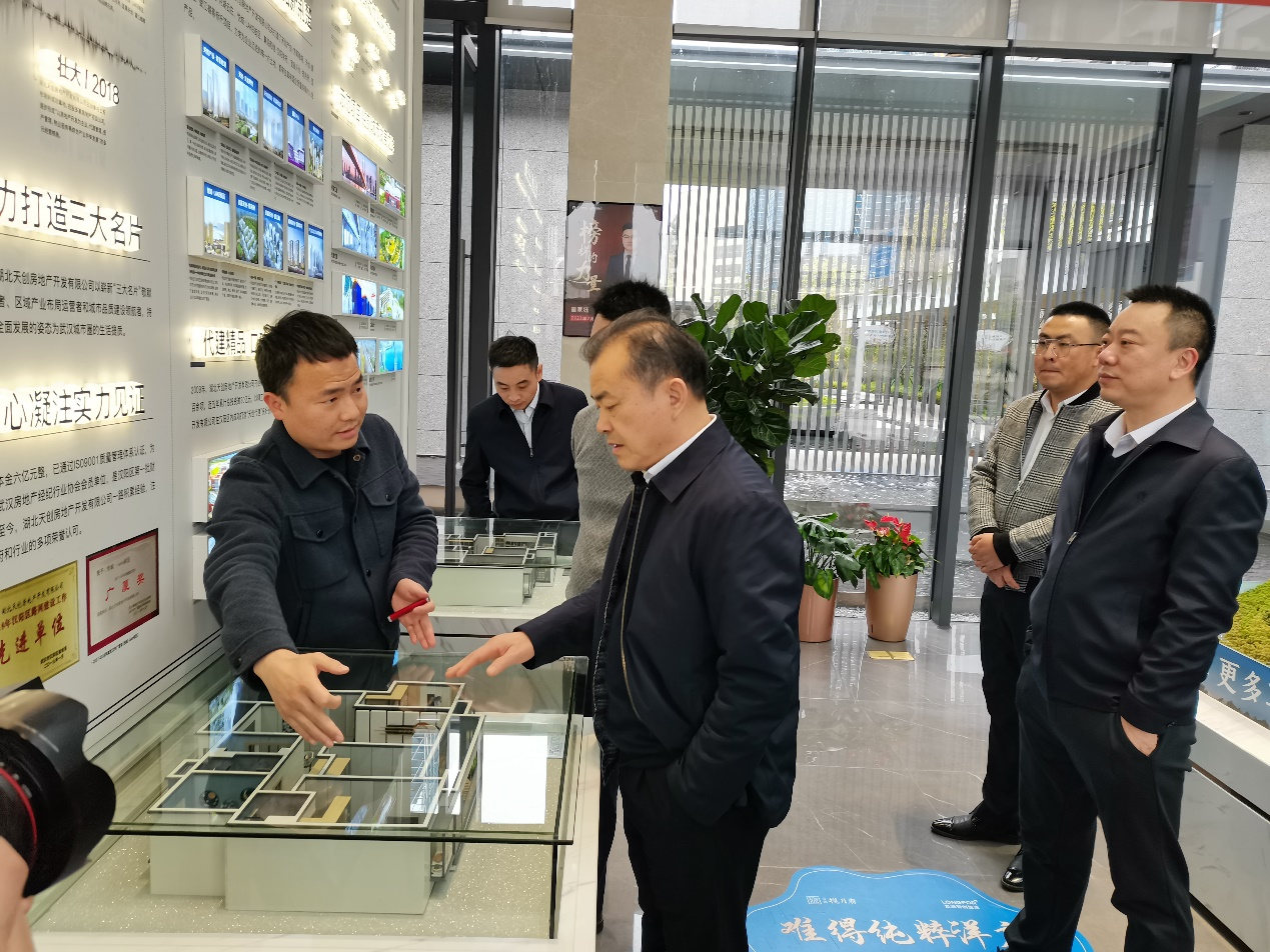 ? ? ? ? 3月21日,漢陽城建黨委書記、董事長嚴悌文一行蒞臨宜昌天創·攬月府及天創·望江樾項目現場,檢查項目建設、營銷等工作進展情況。漢陽市政集團總經理王智高,集團常務副總經理、天創地產董事長錢濤,集團總經理助理彭駿;博宏建設董事長鄒勇,黨委副書記郭一清;天創地產副總經理陳偉等陪同檢查。