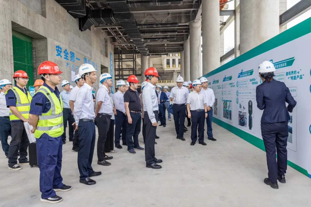 劉雪榮一行實(shí)地考察了中南科研設(shè)計(jì)中心施工現(xiàn)場(chǎng),通過講解互動(dòng)和實(shí)地觀摩,全方位了解了項(xiàng)目在新技術(shù)應(yīng)用、安全質(zhì)量管控、標(biāo)準(zhǔn)化建設(shè)、智能化管理等方面的亮點(diǎn)與成效。調(diào)研組對(duì)施工現(xiàn)場(chǎng)BIM信息技術(shù)應(yīng)用、構(gòu)件二維碼上墻等創(chuàng)新舉措表示認(rèn)可,充分肯定項(xiàng)目通過物聯(lián)網(wǎng)設(shè)備實(shí)時(shí)采集環(huán)境數(shù)據(jù),太陽能供電系統(tǒng)、盤扣支架通道,消防水系統(tǒng)與照明系統(tǒng)永臨結(jié)合等環(huán)保舉措,希望項(xiàng)目團(tuán)隊(duì)繼續(xù)攻堅(jiān)克難,為推動(dòng)武漢打造“工程設(shè)計(jì)之都”作出更大貢獻(xiàn)。