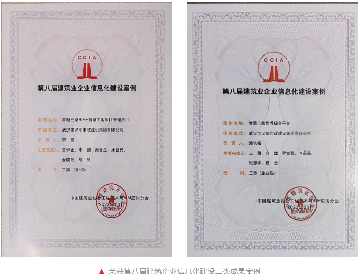 4月20-21日,中國建筑業協會在成都召開建設工程BIM技術應用暨信息化建設經驗交流會,由漢陽市政申報的《高新三路BIM+智慧工地項目管理應用》和《智慧市政管養綜合平臺》榮獲二類成果案例!