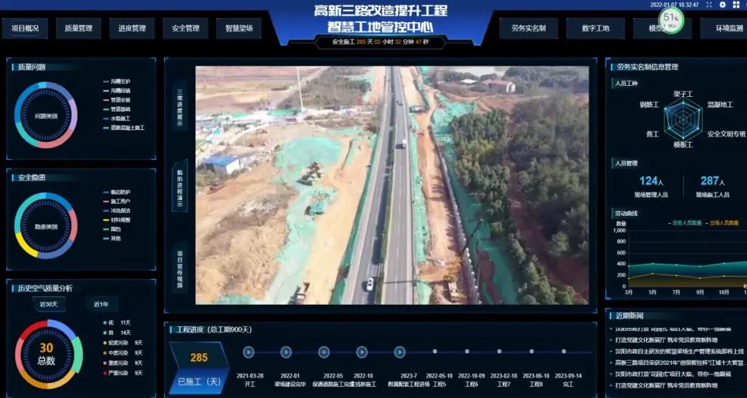 高新三路項目以BIM為載體,以業務為核心,以數據為導向,以成本管理、質量管理、進度管理、安全管理、設計管理、技術管理、物資管理、合同管理為模塊,展開數字化相關管理工作,將模型的管理數據與設計屬性數據進行系統集成,借助BIM+GIS提高項目管理效率和質量。對項目進行過程控制及分析,打通各個業務之間、各個參與單位之間數據聯系,確保數據唯一性,解決數據孤島,搭建“數字化智慧工地”,為管理決策提供依據,為項目管理提供強大、智能、高效、精準的管理手段。