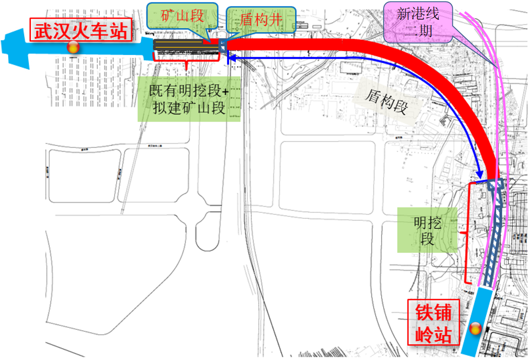 武漢市軌道交通新港線一期工程線路全長10.71km,共設站5座。其中新港線一標包含北洋橋站(明挖車站)、北洋橋站~武漢火車站(盾構及明挖區間)、武漢火車站(既有站內改造)、武漢火車站~鐵鋪嶺站(盾構及明挖區間)2站2區間。